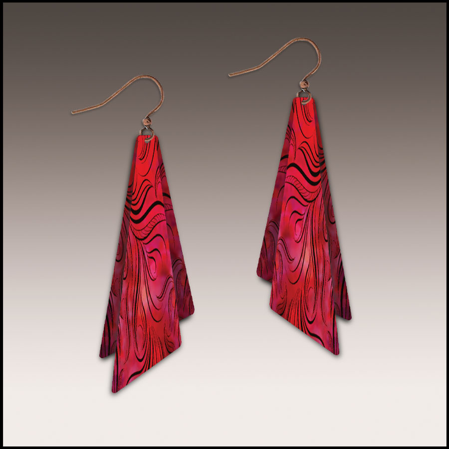 Our very stylish earrings are ultra-light weight & water resistant. Each earring is a handcrafted UV giclée image printed on two stainless steel pieces that swing independently. The ear wires are hypo-allergenic, antique copper and contain no nickel. Dimensions: ¾” x 1¾”.